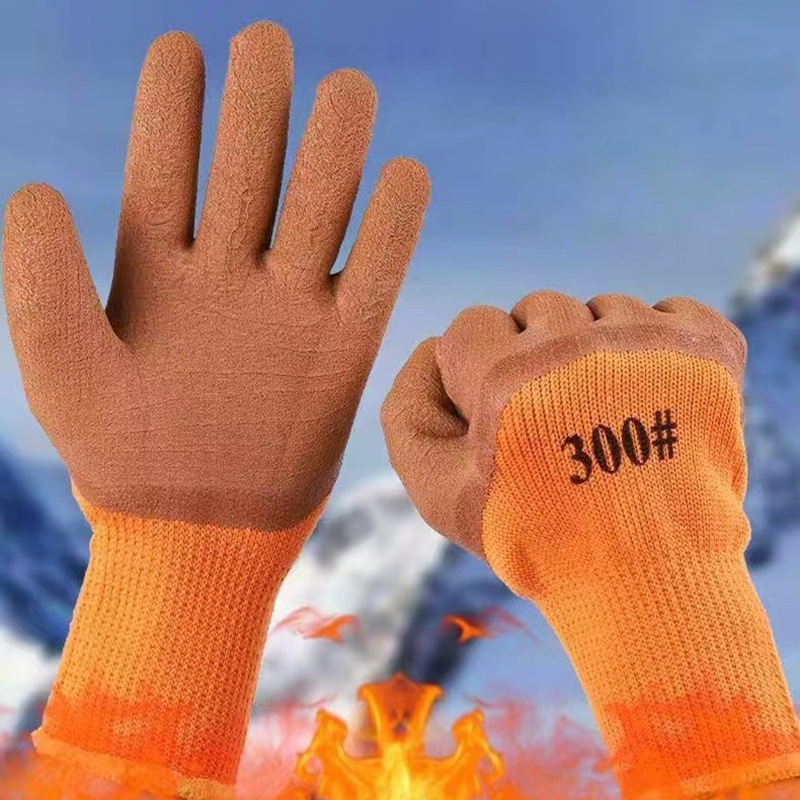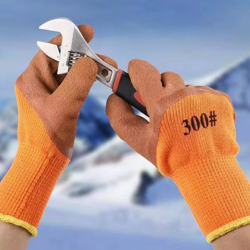 加绒加厚冬季毛圈劳保手套乳胶发泡耐磨冷库软胶防滑手套厂家批发