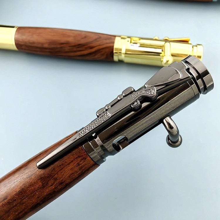 创意广告礼品笔金属黄铜木笔仿枪栓按动圆珠笔雕刻logo商务礼品笔