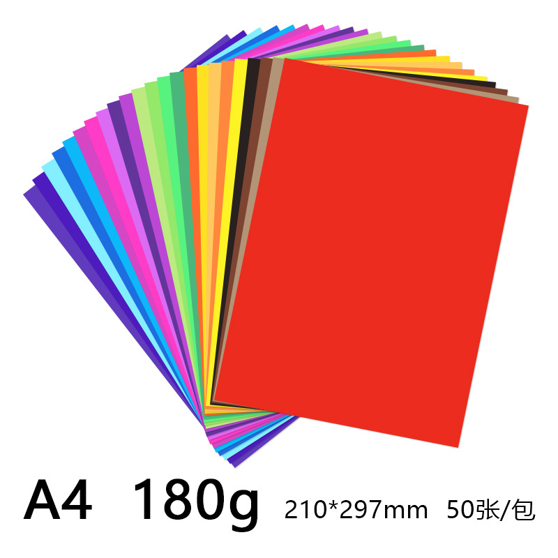 180g彩色硬卡纸20色50张小学生手工剪纸绘画必备硬卡纸a4加厚卡纸