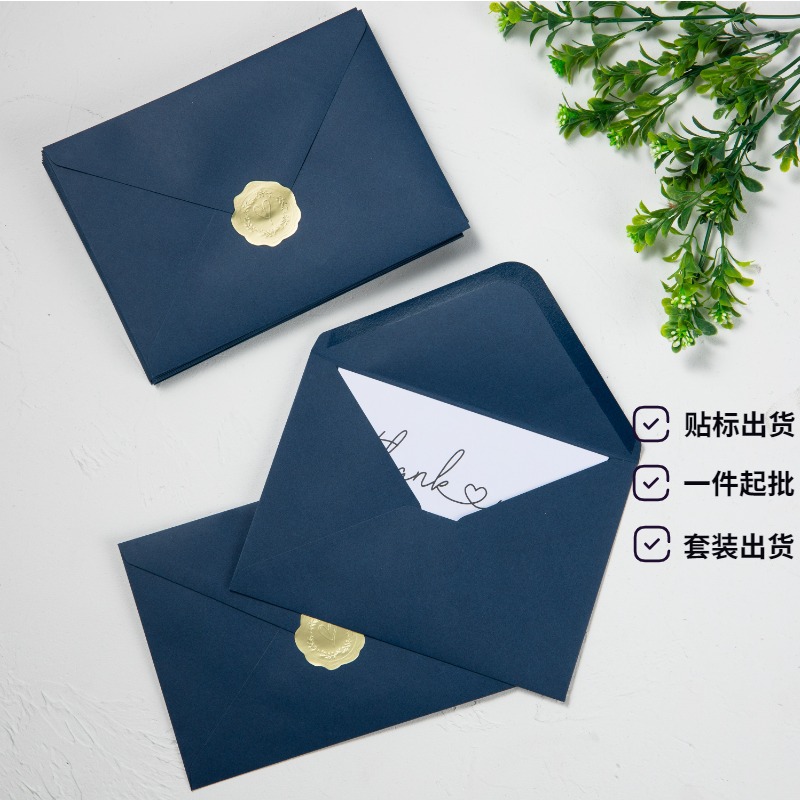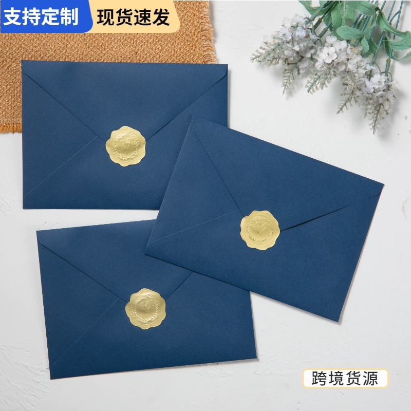 外贸ins风藏蓝色西式信封金色压花心形贴贺卡邀请函套商务礼品