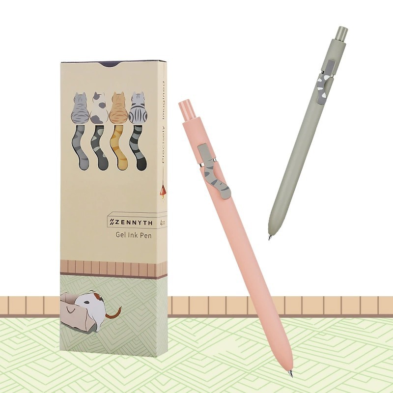 赞仕萌猫莫兰迪色中性笔创意可爱猫尾笔夹弹性握感书写不累手黑