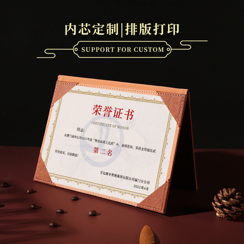 A4复古皮革横版荣誉证