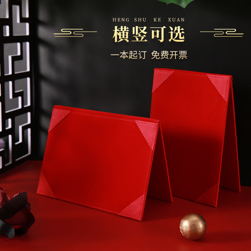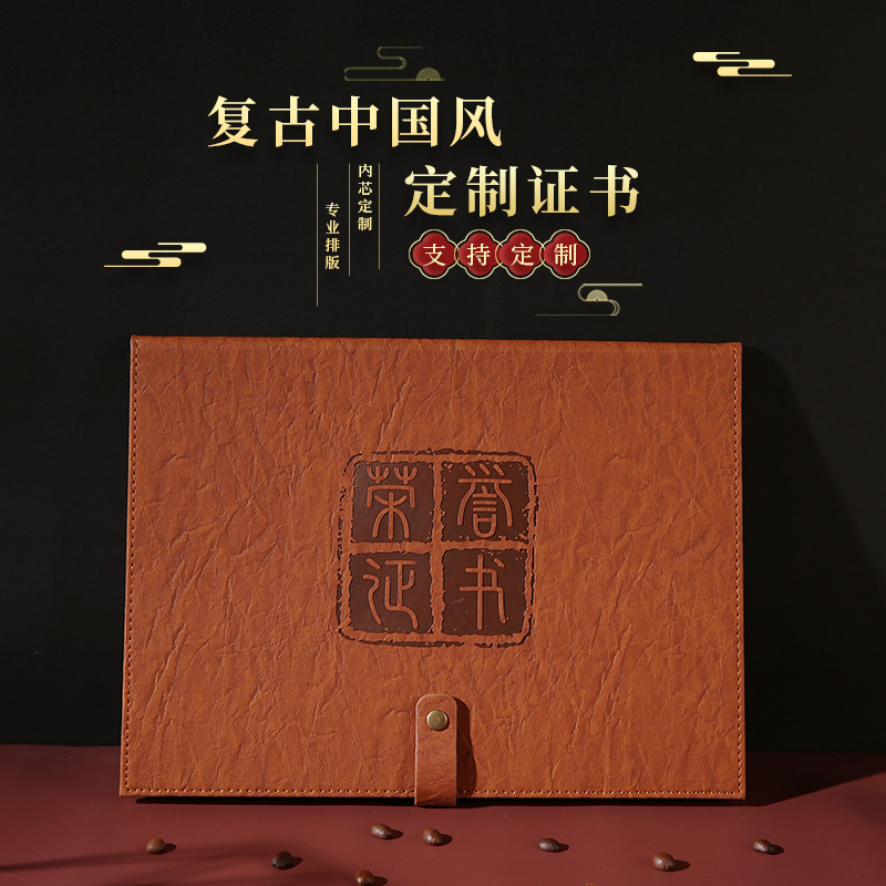 A4复古皮革横版荣誉证书竖版聘书收藏证书带扣A5证书外壳加厚现货