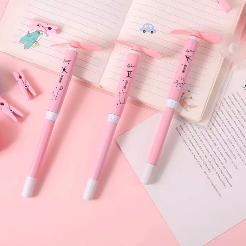 糖果色十二星座风扇中性笔 夏日清凉随身携带笔
