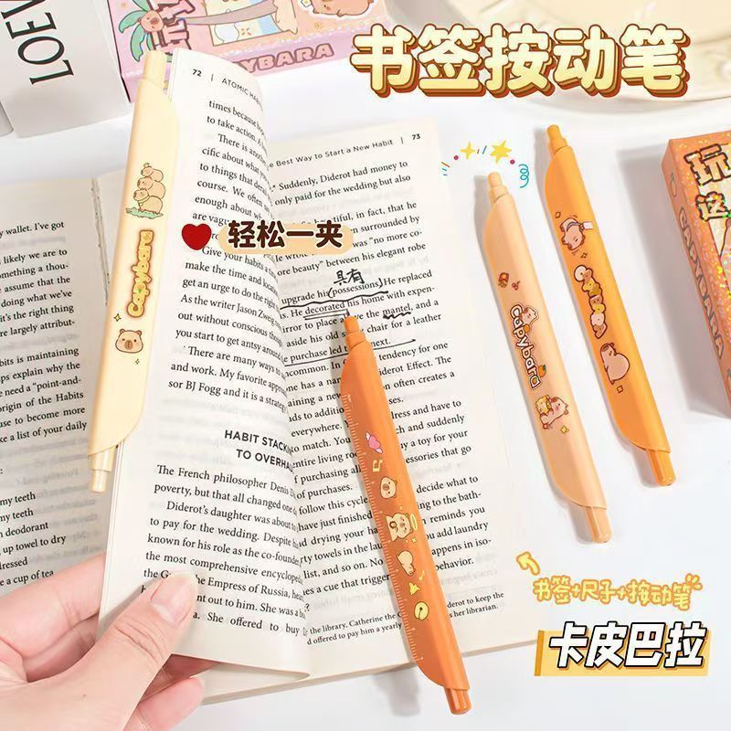 卡通书签尺子笔可爱创意学生按动刷题笔ST速干黑色按动中性笔批发