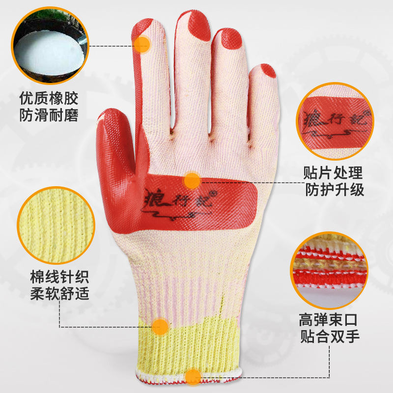 正品狼行记胶片劳保手套防滑耐磨防切割建筑工地工人防护橡胶手套