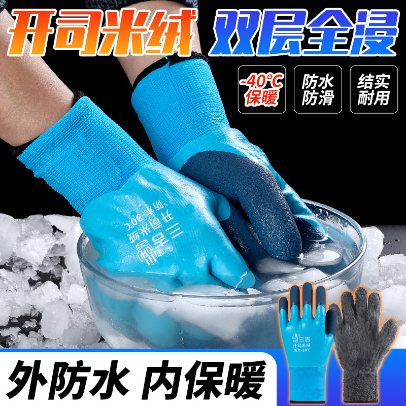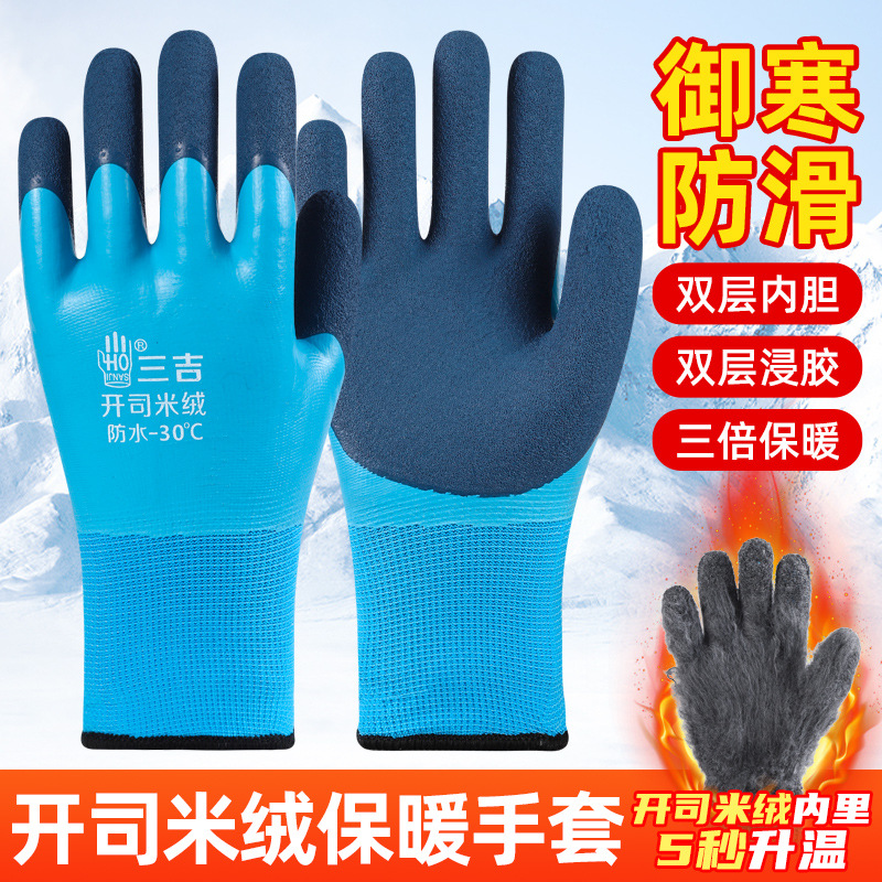 手套劳保工作耐磨冬季加绒加厚保暖防滑防水杀鱼干活冷库全胶手套