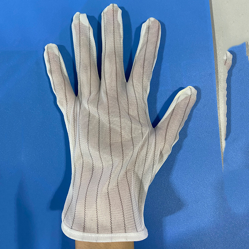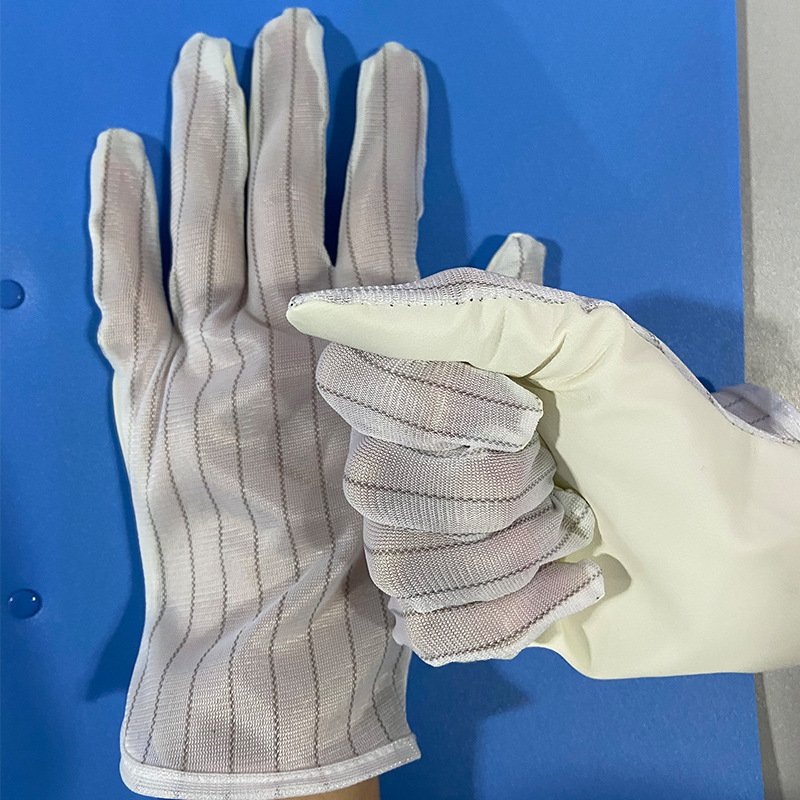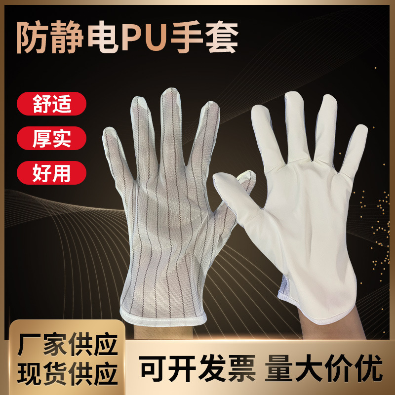 米黄色pu防静电手套劳保无尘电子厂专用防滑防护点胶条纹 涂指手套