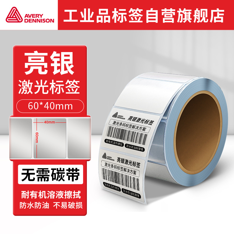 艾利丹尼森 亮银激光标签 60*40mm*500张/卷 耐有机溶液擦拭防水