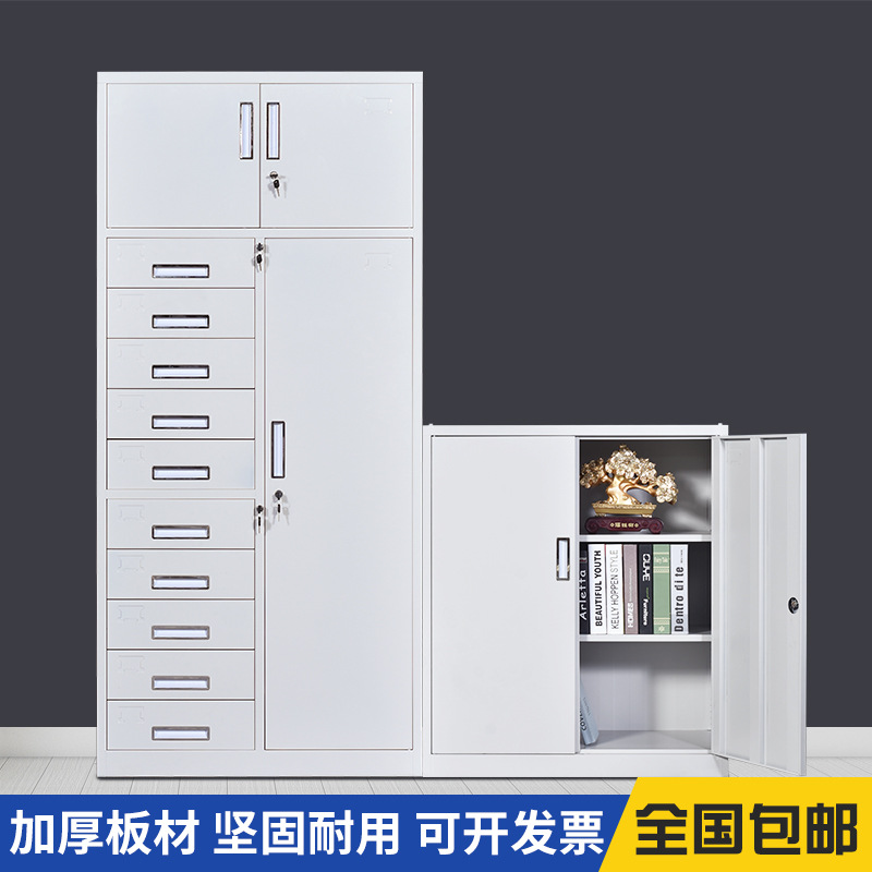 钢制24斗文件柜玻璃移门柜多斗带锁收纳柜抽屉资料柜12斗办公矮柜