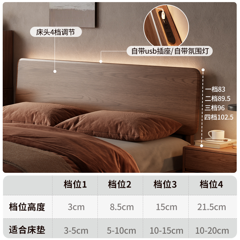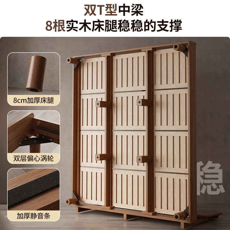 中式实木床双人床1.8米主卧大床北欧简约卧室家用1.5小户型单人床