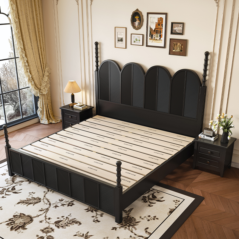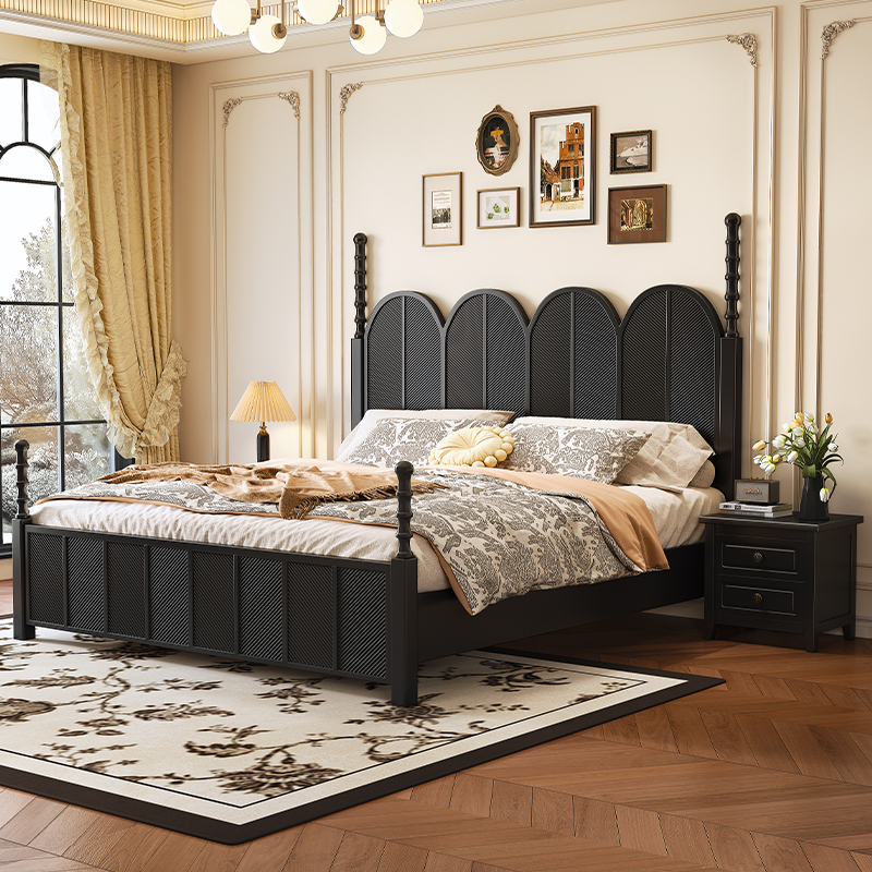 法式复古中古风全实木床雕花罗马柱黑色美式轻奢主卧床婚床公主床