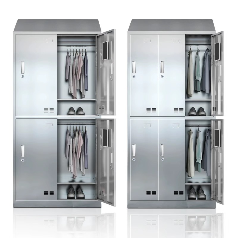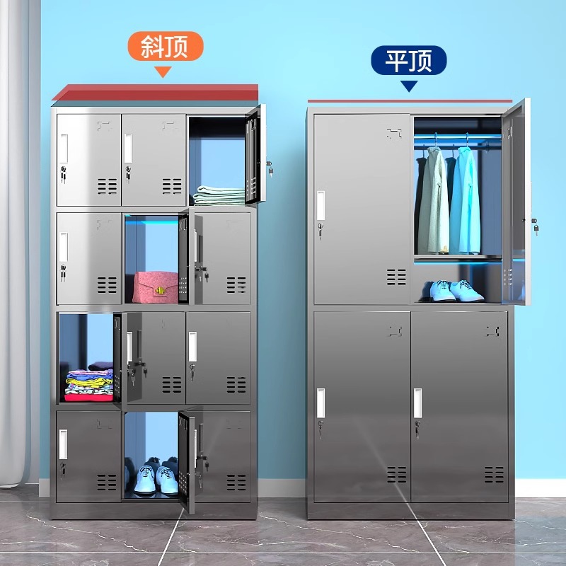304不锈钢斜顶更衣柜食品厂无尘车间消毒多门衣柜员工浴室储物柜
