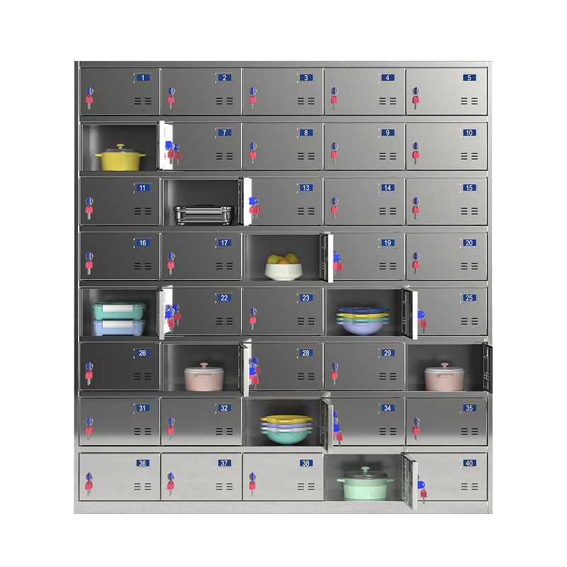 304不锈钢碗柜食堂餐具柜带锁餐盘柜工厂餐厅饭盒收纳存放柜钢制