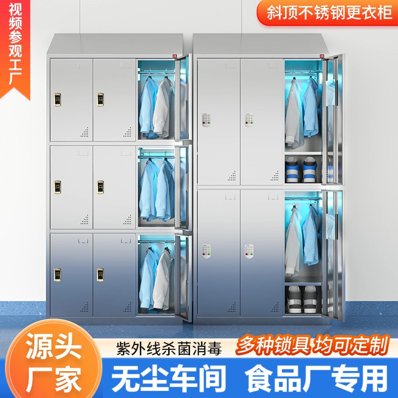 304不锈钢斜顶更衣柜无尘净化车间食品厂洁净室员工消毒储物柜子