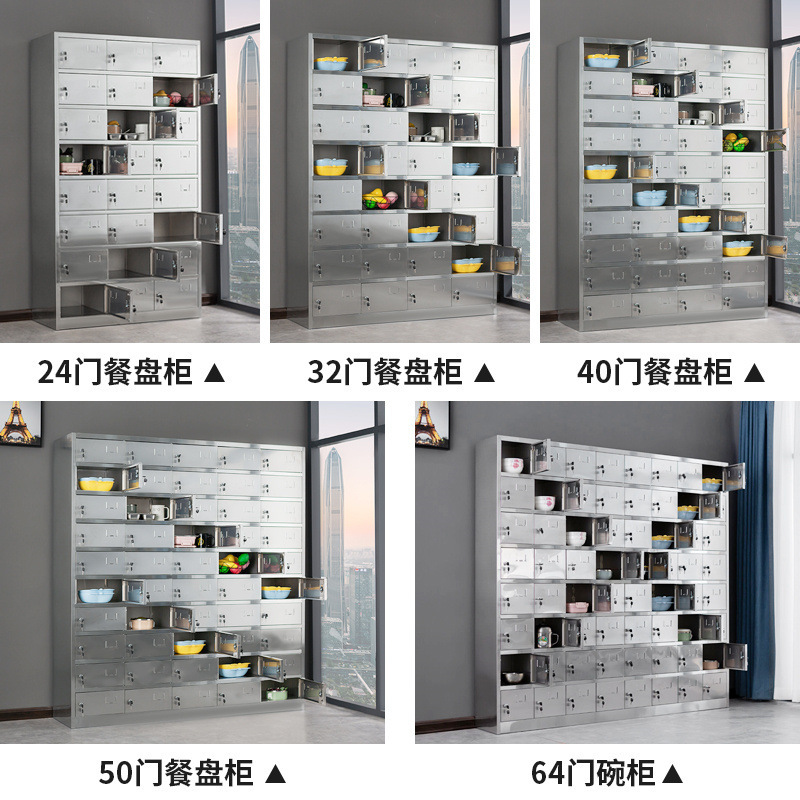 304不锈钢员工碗柜食堂餐盘柜饭盒学校职工餐具柜餐厅多门储物柜