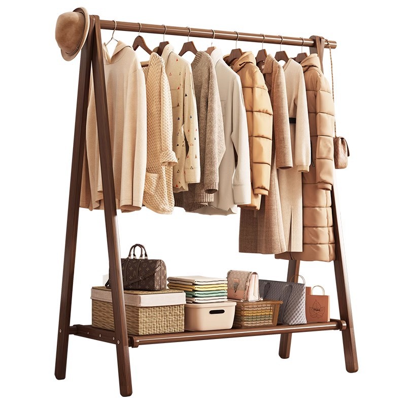 实木衣架落地挂衣架卧室衣帽架家用简易挂衣服架子室内榉木晾衣架