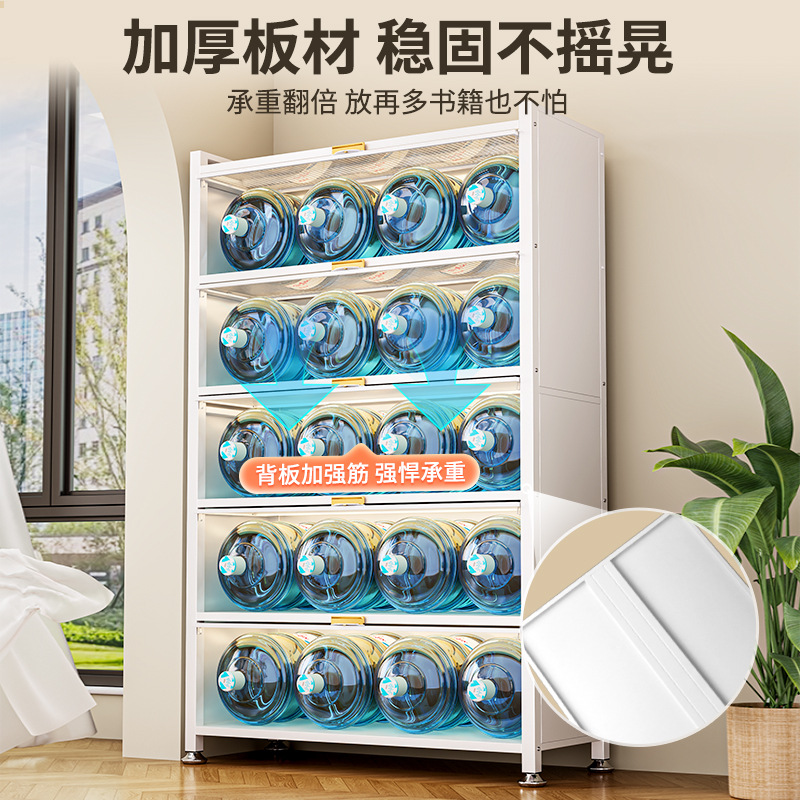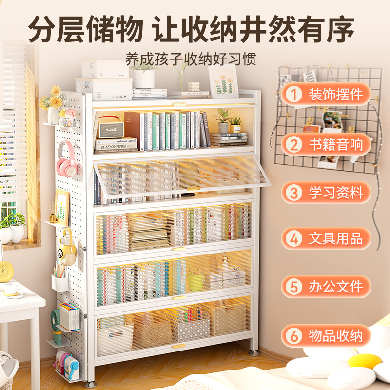 客厅多层落地储物柜子带门置物架家用钢制书柜收纳柜儿童防尘书架