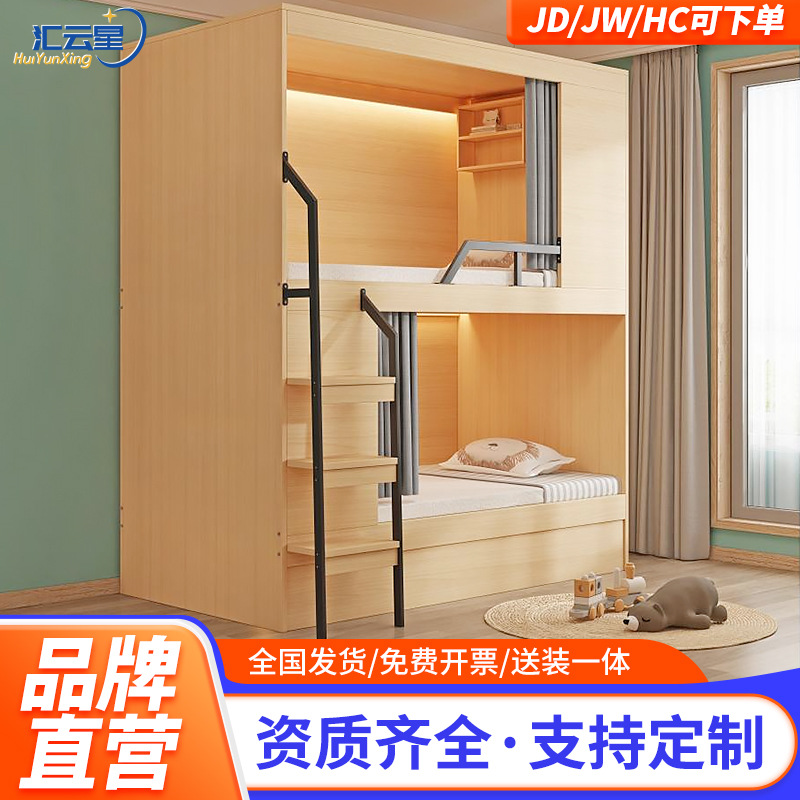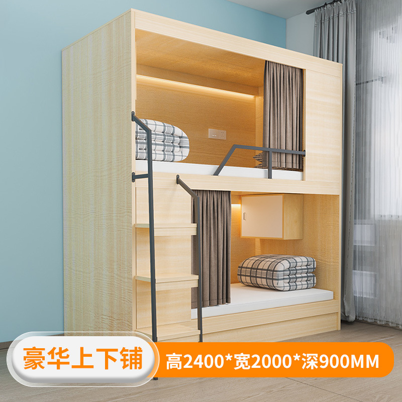 实木青旅上下铺床太空舱酒店高低床电竞酒店双层床同宽床公寓床