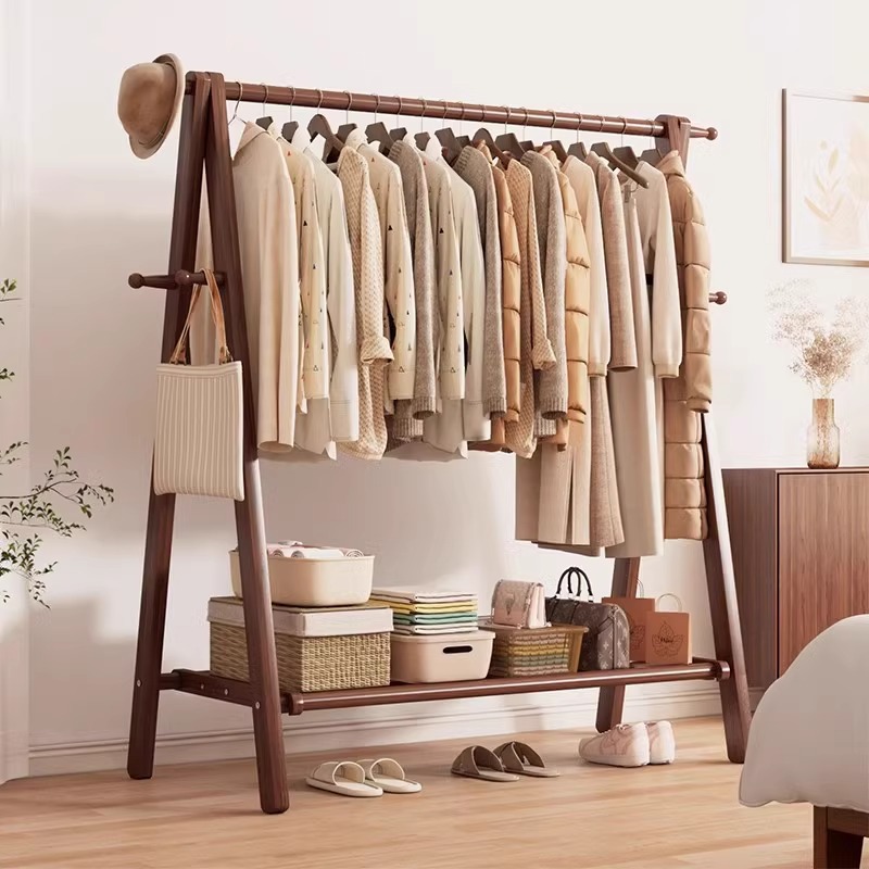 实木衣架落地卧室挂衣架挂衣家用室内挂衣服架子衣帽架木质晾衣架