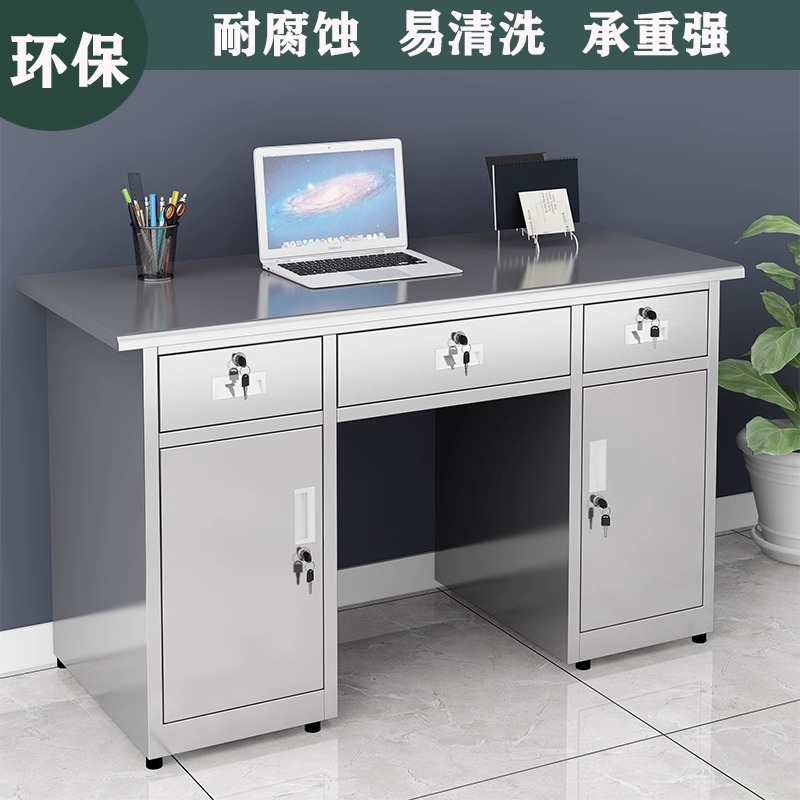 304不锈钢办公桌电脑桌无尘车间工作台实验室单人操作台抽屉带锁