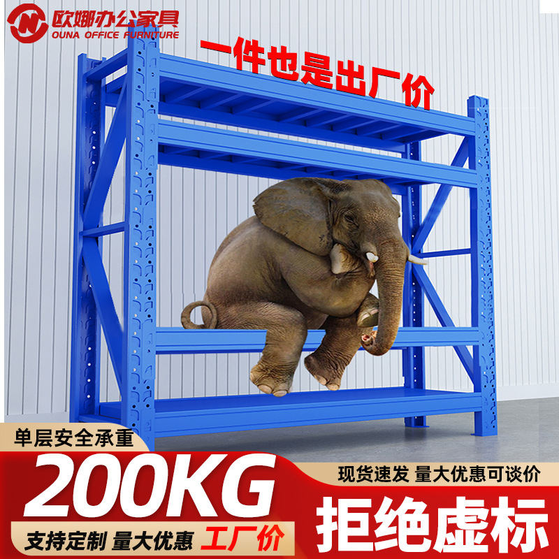 蓝色仓储货架200kg轻型中性仓库置物架五金库房储物收纳加厚架子