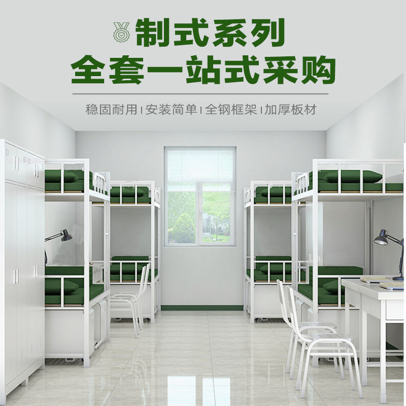 欧娜制式营具加厚双层床内务柜上下铺铁床带锁储物柜学习桌椅组合