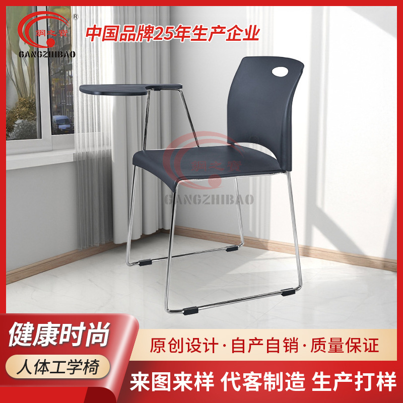 厂家批发简约时尚办公椅带写字板办公靠背椅职员办公会议培训椅子