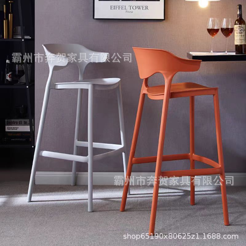 北欧简约吧椅现代极简塑料靠背吧台椅家用可叠放设计师创意高脚凳