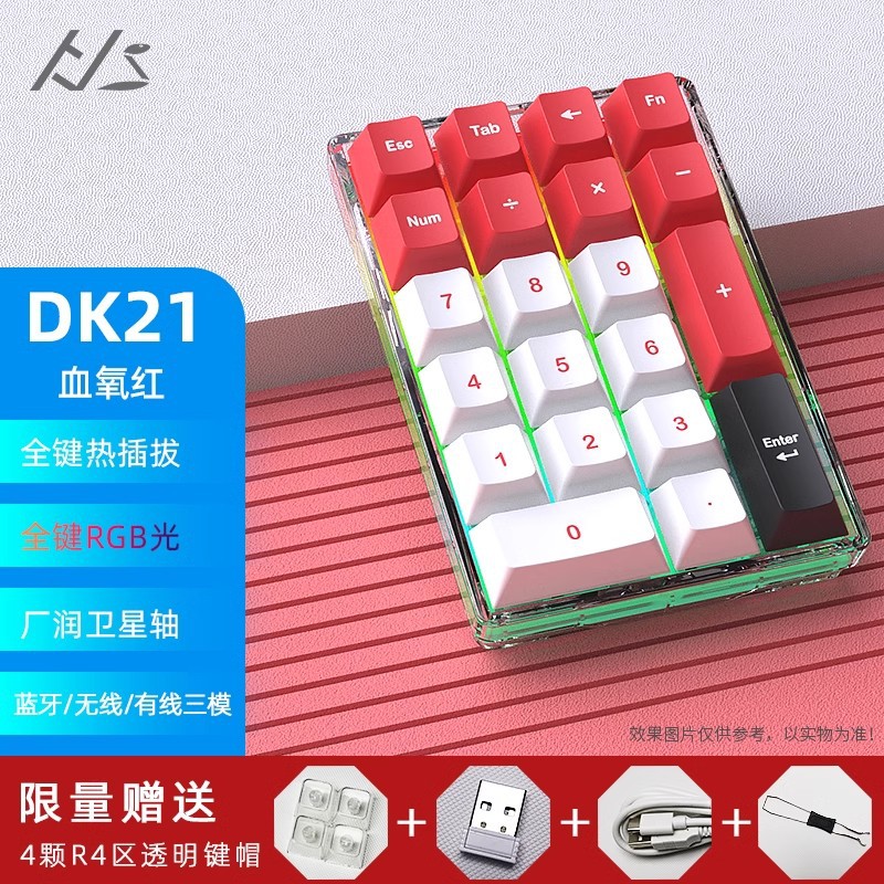 黑吉蛇 DK21机械套件RGB有/无线蓝牙三模透明数字小键盘pad热插拔