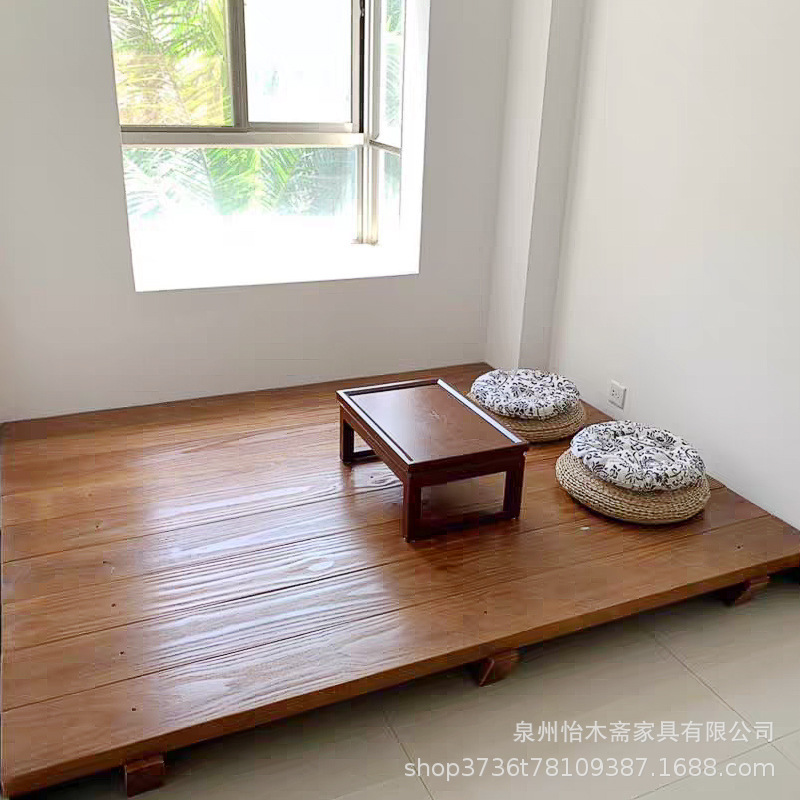 日式榻榻米实木落地床客栈民宿地台床飘窗阳台阁楼原木地铺床矮床