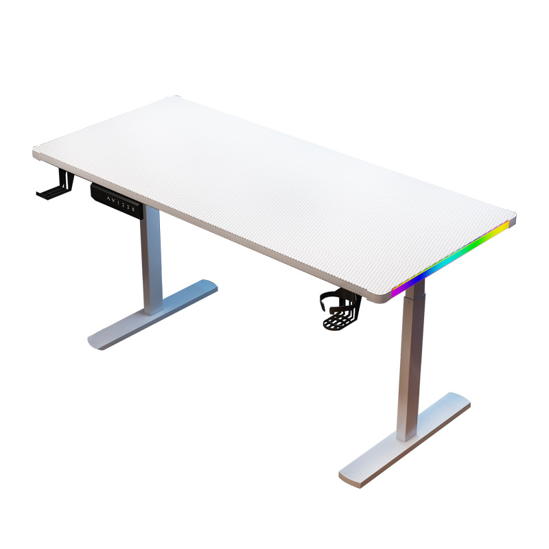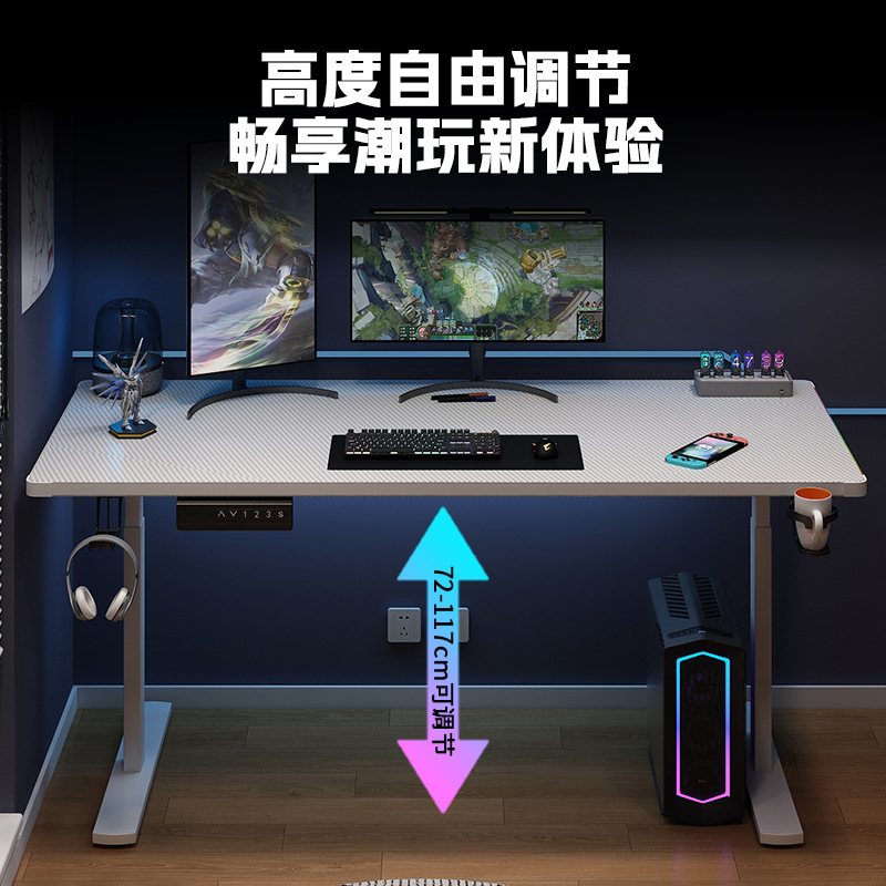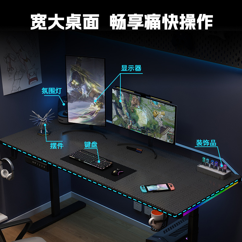 电动升降桌电竞桌电脑桌led带灯碳纤维家用电竞房台式桌 外贸可供