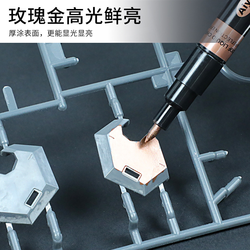 AIYE金属镀铬马克笔高光液态签名镜面笔玫瑰金色补漆笔上色油漆笔